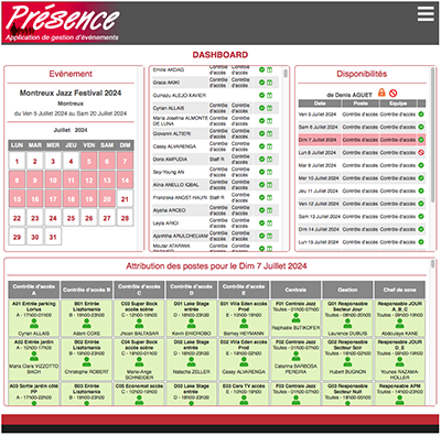Entièrement modelable à votre nécessité par vos soins ou avec notre aide, cette application-web vous permet de gérer l’activité et l’attribution des postes de travail pour toutes les équipes présentent sur le lieu de votre événement. Que l’on parle d’accueil, de sécurité, du contrôle d’accès, de l'équipe technique, de l'administration ou de la restauration, cette application répondra entièrement à vos besoin.